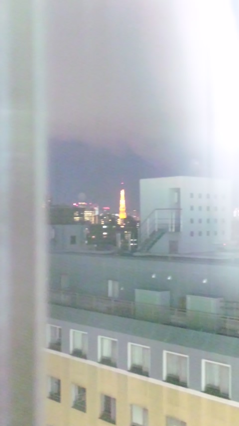東京タワーの先端が曲がったそうで、確かに明かりがついてません。