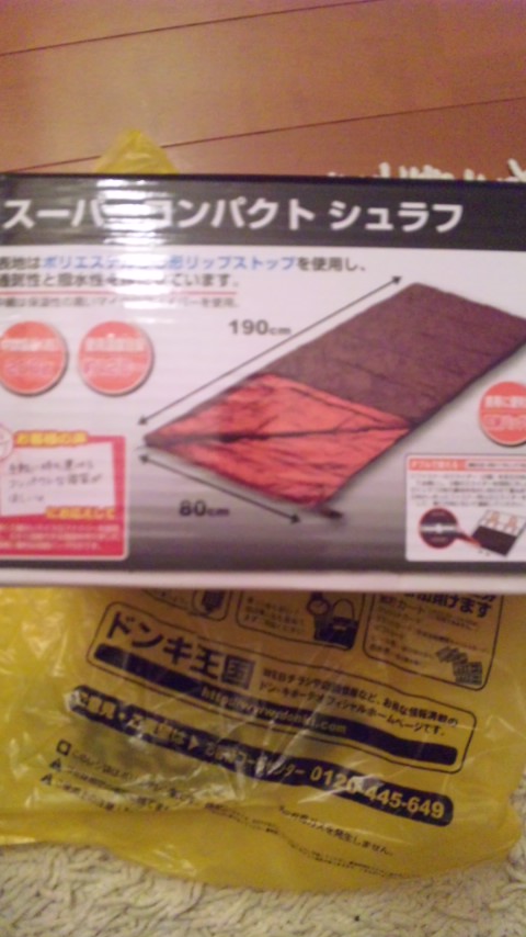 8月のキャンプのために、ドンキホーテで寝袋購入。